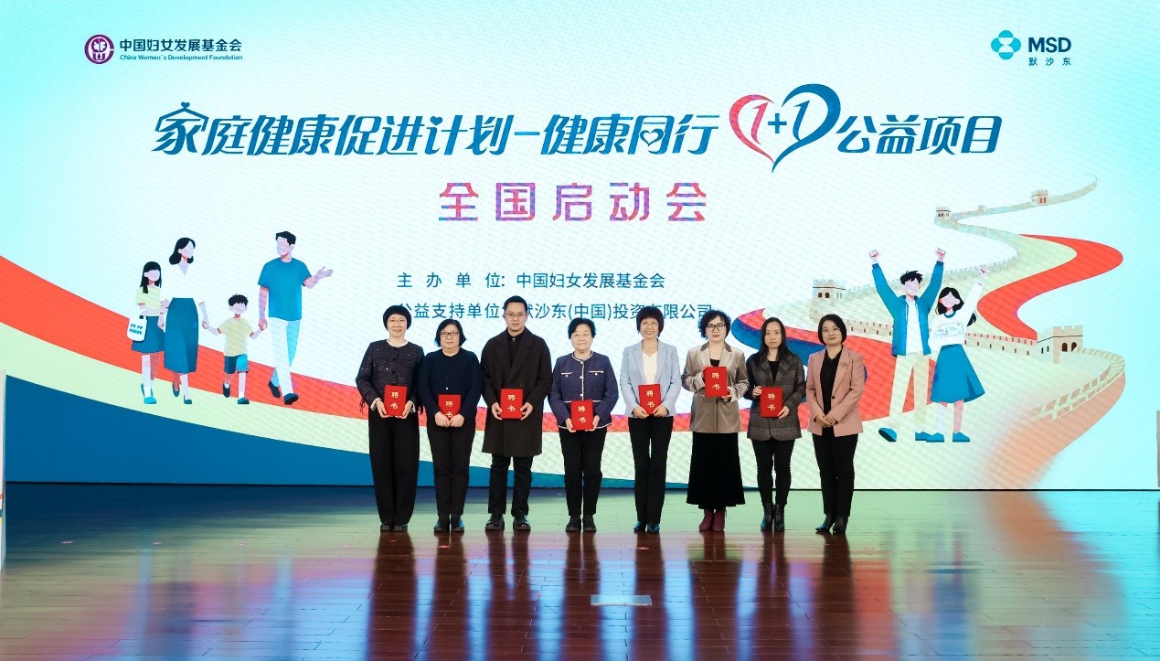 为响应“十五五”规划建议关于“加快建设健康中国,促进人口高质量发展”的重要部署,12月5日,由中国妇女发展基金会主办,默沙东(中国)投资有限公司公益支持的“家庭健康促进计划——健康同行1+1公益项目”在京正式启动。中国妇女发展基金会副理事长兼秘书长董葵、默沙东中国副总裁徐鹏出席活动并讲话。项目得到了中华志愿者协会、中国医院协会、中国健康促进与教育协会、中国教育学会体育与卫生分会、中国健康管理协会职工健康管理分会 、中国疾病预防控制中心结核病预防控制中心、中国疾病预防控制中心性病艾滋病预防控制中心等单位的大力支持,相关单位负责人,以及项目专家、工会代表、高校代表出席活动。