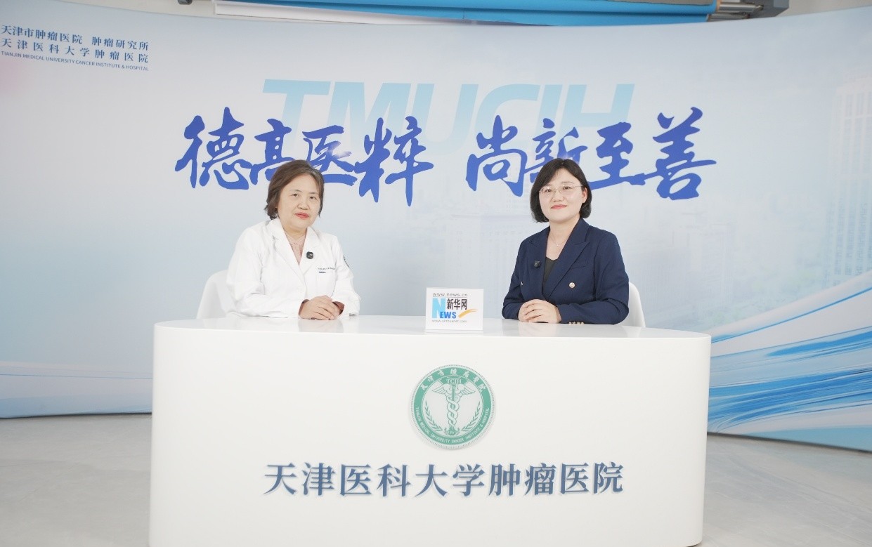 中国抗癌协会乳腺癌专业委员会主任委员、天津医科大学肿瘤医院乳腺肿瘤三科主任张瑾教授(左)接受新华网采访