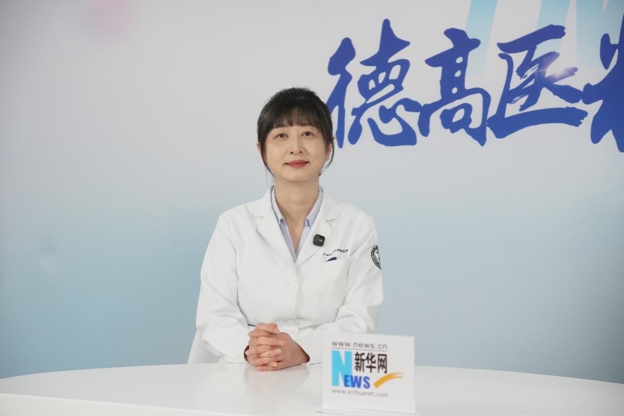 中国抗癌协会肿瘤整形外科专委会主任委员、天津医科大学肿瘤医院乳房再造科主任尹健教授(左一)接受新华网专访