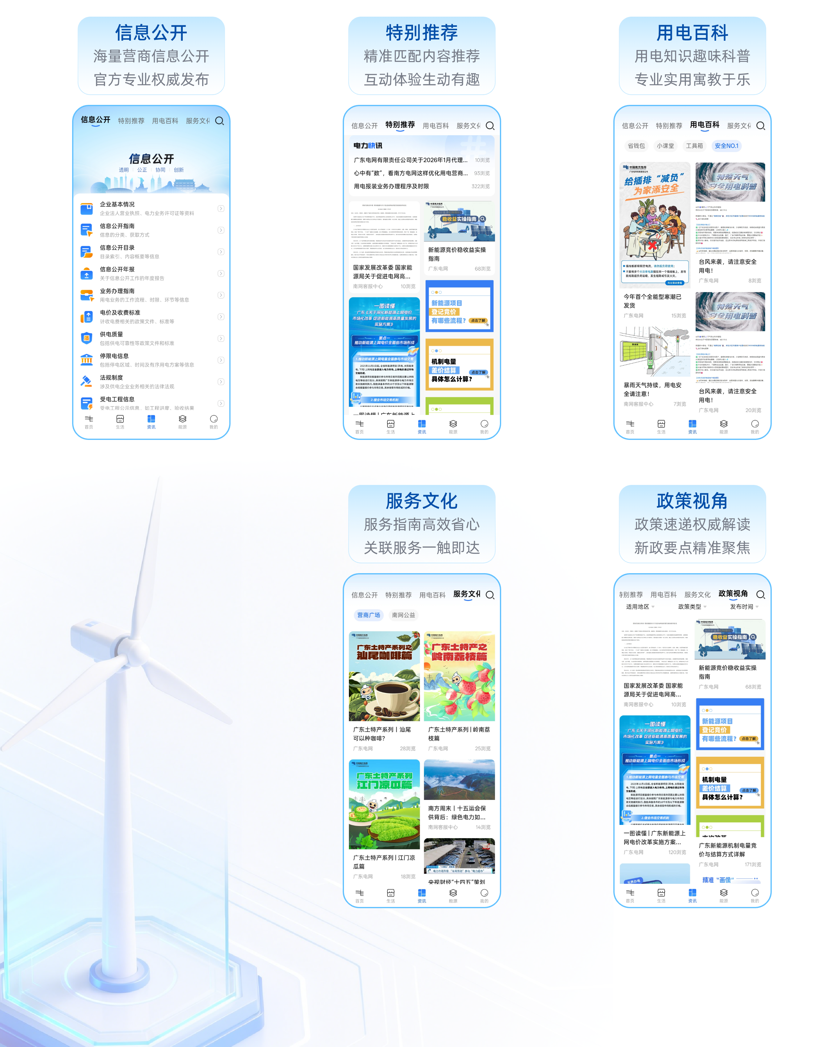 建设推出权威电力知识资讯阵地,推动信息与服务融合。“南网在线”整合政策信息公开、电力知识科普、营商环境宣传等内容,开设用电百科、政策视角等特色频道,为用户提供轻松流畅、生动易懂的阅读体验,并将资讯关联至对应服务,实现“知识获取-业务办理”一键直达。