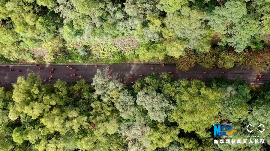 21个地级市分别选派出精兵强将参赛,在4天比武时间展开角逐。图为航拍3000米负重跑比赛现场。新华网发