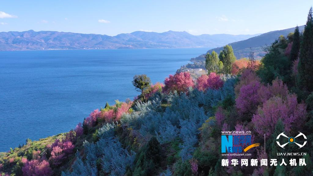 红花依碧水,仙湖早争春。在北方正冰天雪地的时候,云南澄江抚仙湖畔却红翠相染,山花烂漫,依旧温暖如春。冬樱花与绿树、蓝天、碧水,共同构成一幅色彩斑斓的山水画卷。新华网发(澄江市融媒体中心)