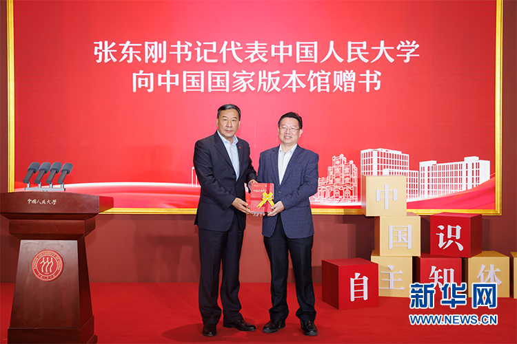 中国人民大学党委书记张东刚代表中国人民大学向中国国家版本馆赠书