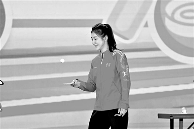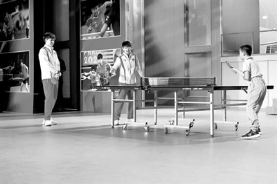 ③奥运冠军孙颖莎跟学生一起打乒乓球。 尹硕 摄