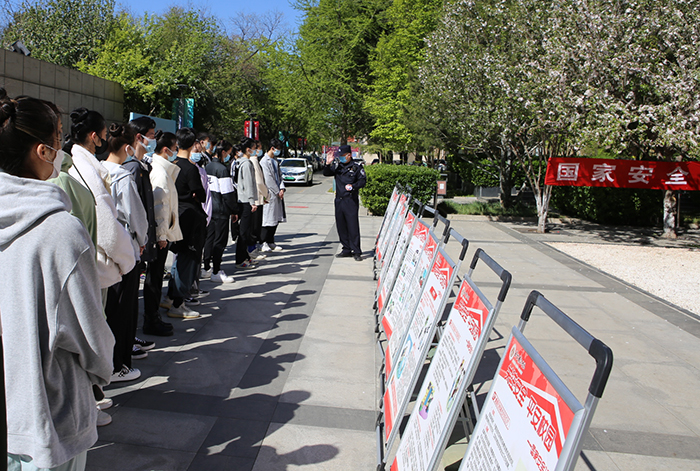 北京舞蹈学院邀请海淀分局民警到校,现场给在校学生宣传国家安全法规。