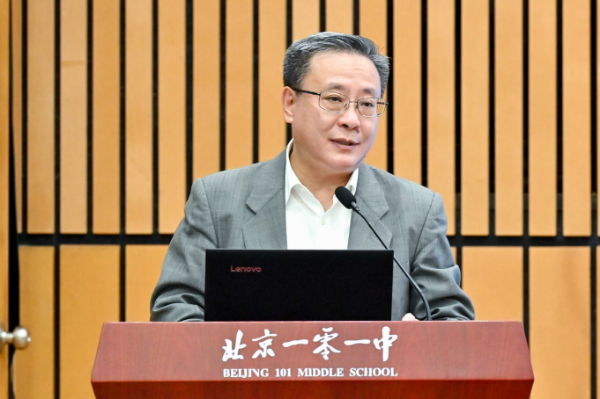 北京一零一中校长陆云泉介绍了学校数字校园建设情况。市教委全体班子成员、处室负责同志,各区教委,北京教育学院、北京教育科学研究院、北京教育融媒体中心、北京数字教育中心、北京市教师发展中心、北京教育督导评估院相关负责同志在主会场参会。各区教委班子成员、相关科室负责同志,小学、中学校领导以及骨干教师代表在分会场参会。