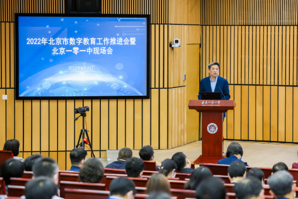 新华网北京4月22日电 21日下午,2022年北京市数字教育工作推进会在北京一零一中举行。会议以线上线下结合形式召开,主会场设在北京一零一中,各区、相关基层单位设分会场。教育部基础教育司司长吕玉刚,北京市委教育工委副书记、市教委主任刘宇辉出席会议并讲话。
