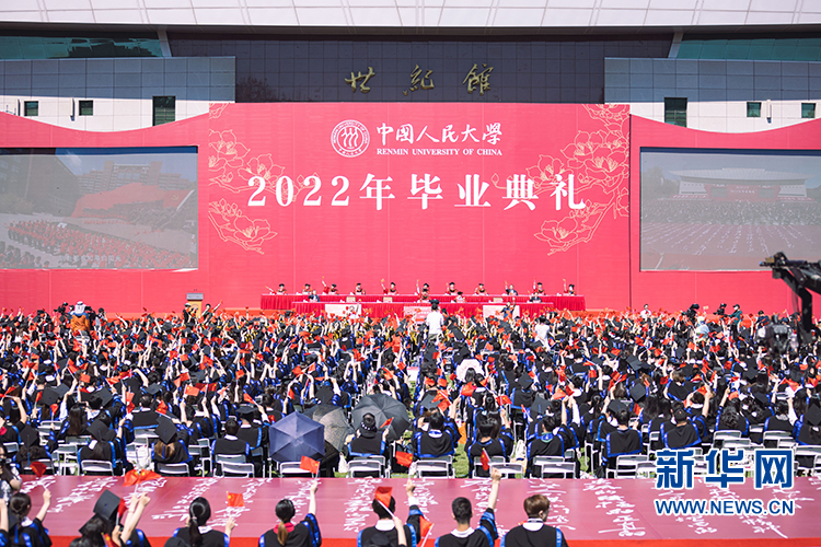 新华网北京6月24日电 6月24日,中国人民大学2022年毕业典礼在世纪馆田径场举办。