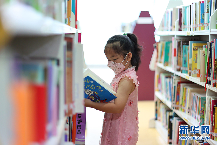 图为一位小读者在找书。新华网发(孙凯芳 摄)