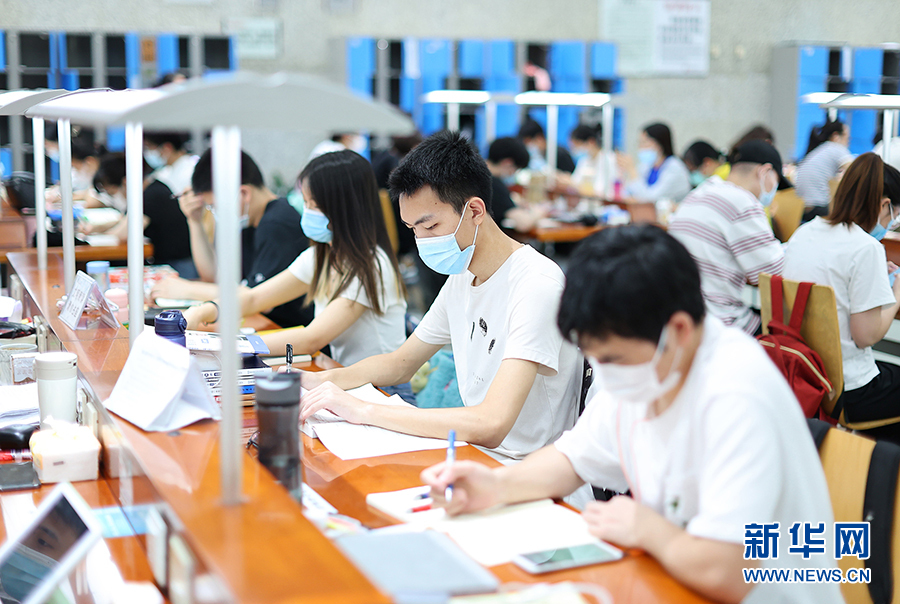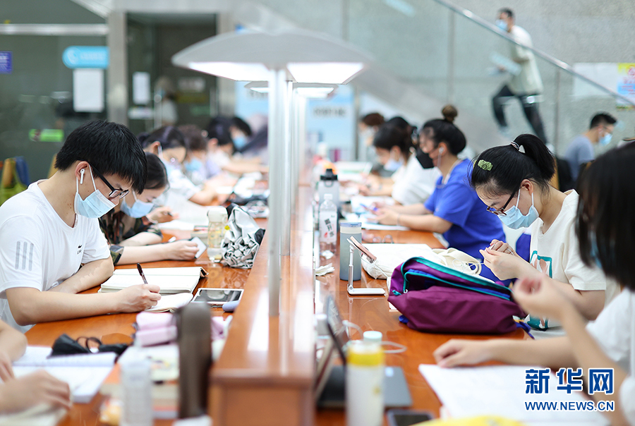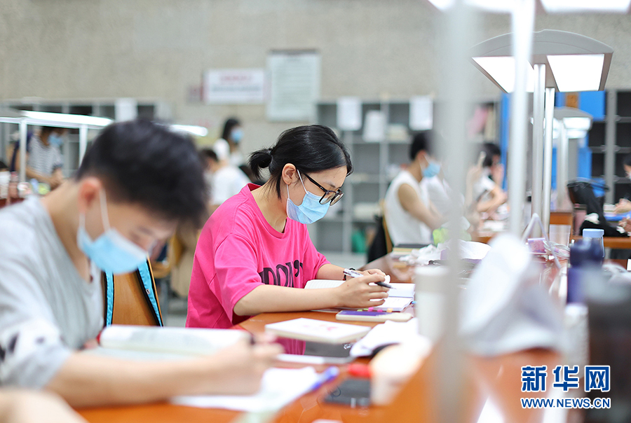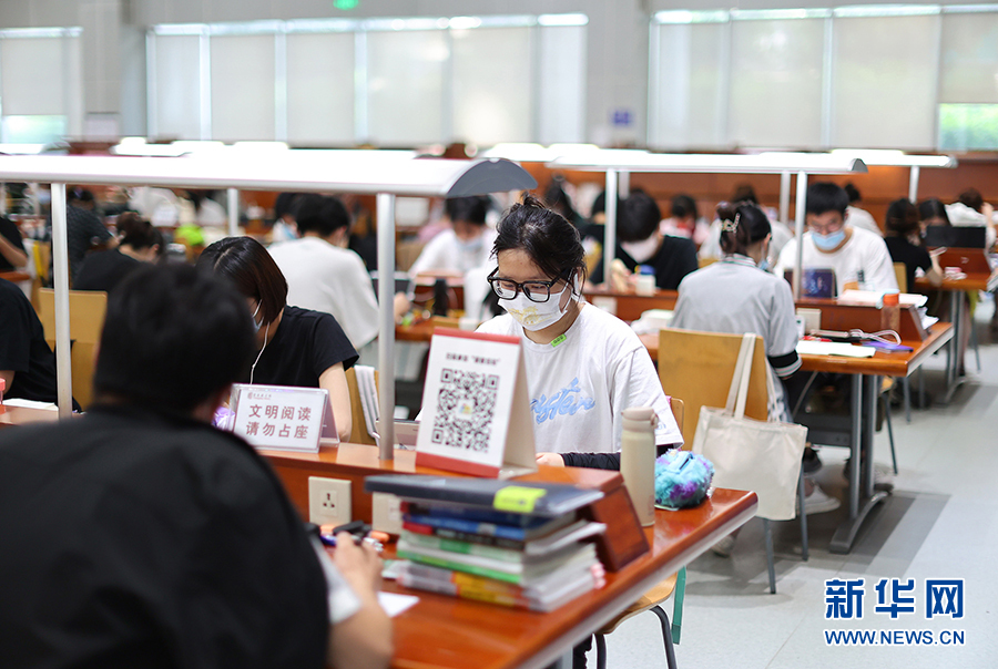 图书馆阅读、学习氛围很好,成了不少读者备考、充电的首选之地。新华网发(孙凯芳 摄)