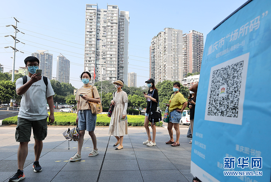 图为读者扫描场所码后进入重庆图书馆。新华网发(孙凯芳 摄)