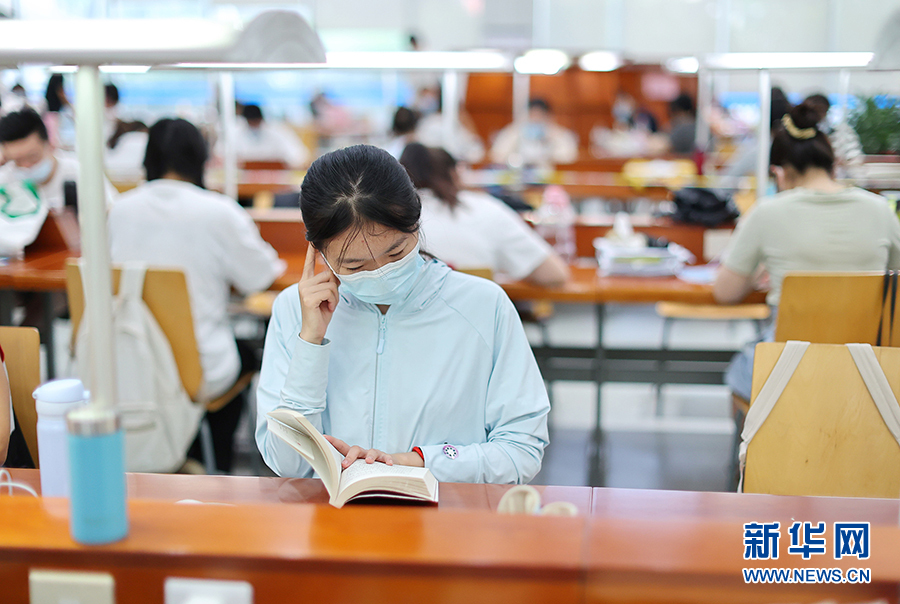 高温天气下,图书馆以其安静、舒适的阅读环境,成为暑假期间不少学生学习、阅读的首选。新华网发(孙凯芳 摄)