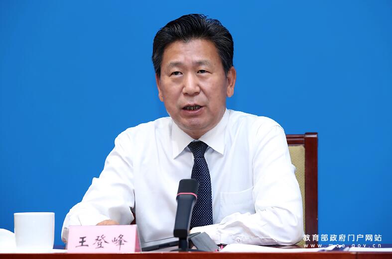 教育部体育卫生与艺术教育司司长王登峰介绍国家智慧教育平台体育、美育、劳动教育板块建设情况。(中国教育报记者 张劲松/摄)
