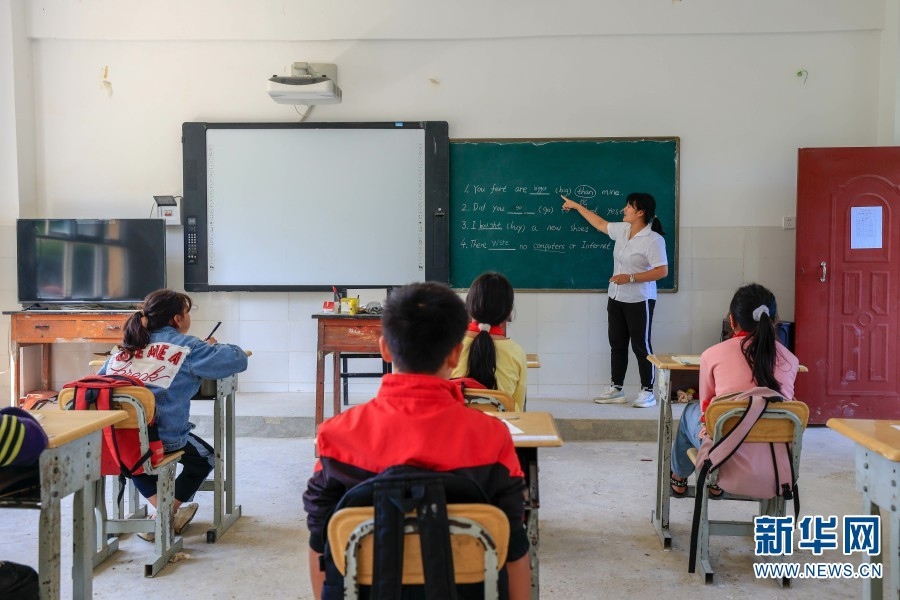 小学阶段的学习即将结束,朱丽丹在给学生们复习英语考试要点(摄于7月6日)。(新华网 赵普凡 摄)