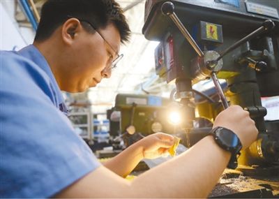 在沈阳飞机工业(集团)有限公司标准件中心,青年工人杨国心在加工飞机零部件。新华社记者 杨 青摄