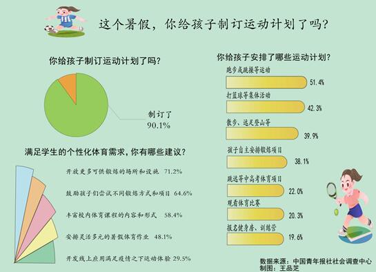 这个暑假,90.1%的受访家长给孩子制订了运动计划。