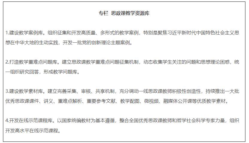 《方案》提出要建设全国高校思政课教研系统,加强国家智慧教育平台思政教育资源建设,推出一批思政“金课”。另外,教育部还将会同中央网信办等,组织开展“大思政课”网络主题宣传活动,鼓励师生围绕思政课教学内容创作微电影、动漫、音乐、短视频等,建设资源共享、在线互动、网络宣传等为一体的“云上大思政课”平台。