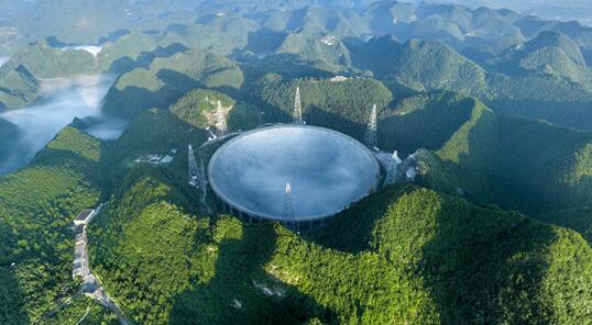 晨曦中的“中国天眼”全景(无人机照片,2022年7月25日维护保养期间拍摄)。新华社记者 欧东衢/摄
