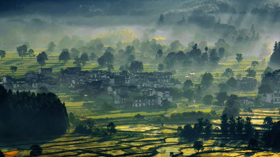 最终,他将宏村南部湖面确定为“绝佳拍摄点”,7月10日清晨,卡在日出时的5点30分,郭昊按下操纵按钮,终于拍出自己满意的和谐画卷——薄雾笼罩下的古村落魅力十足。