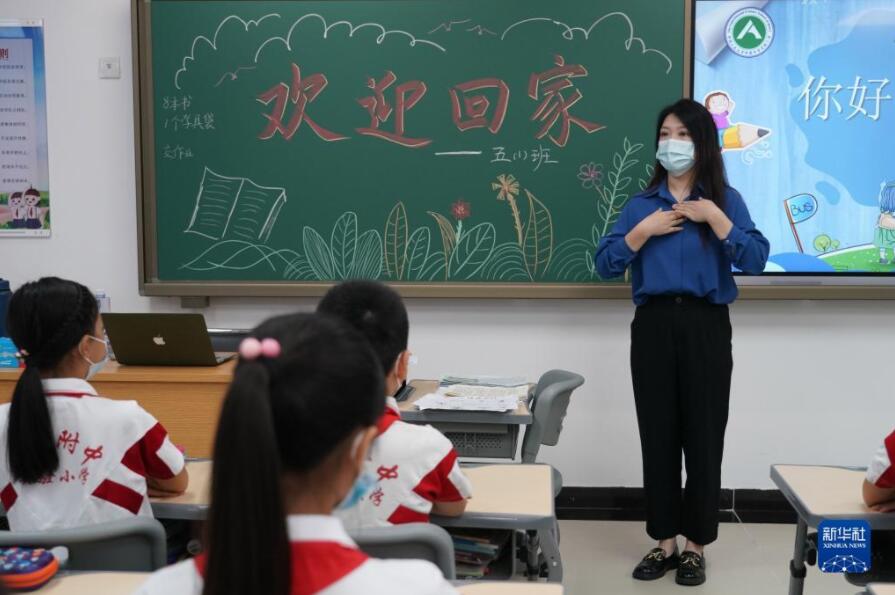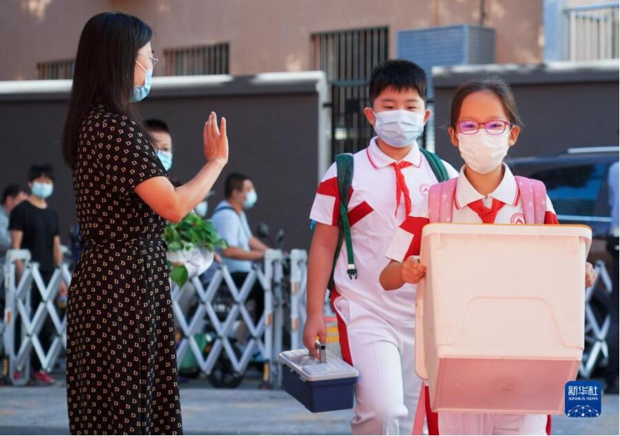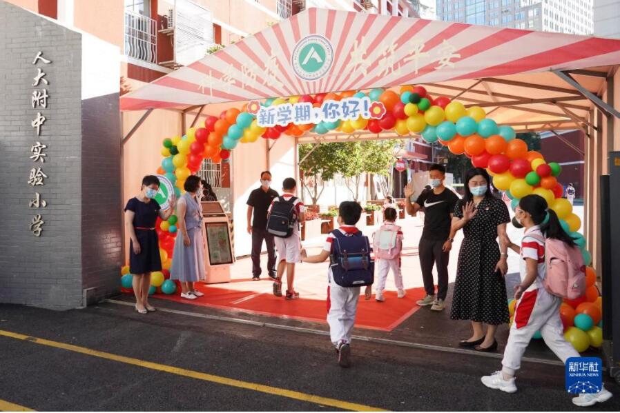 9月1日,在位于北京市海淀区的人大附中实验小学,老师为学生上开学第一课。