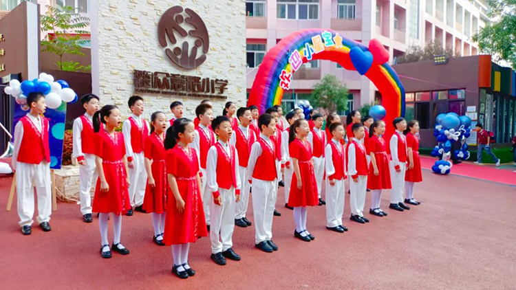 伴随着优美的旋律,郑东新区众意路小学迎来了一年级“你好 新同学”主题迎新仪式。