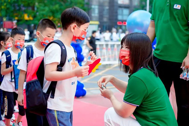 校长早已经准备好了小礼物,给每个孩子都送上一个众意吉祥物,再给他们一个大大的拥抱,祝愿他们在众意的大家庭里开心快乐!