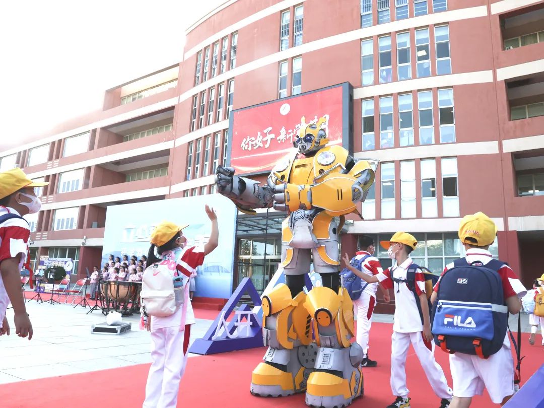 开学当天,除了校长王教凯等学校领导、教师在校门口迎接学生们到来以外,机器人也出现在迎接学生的队伍中。身高2米、对答如流、风趣幽默的“大黄蜂”变身机器人和学生们交流互动,智能小机器人引导学生入校,它们成功吸引了众多学生驻足围观。