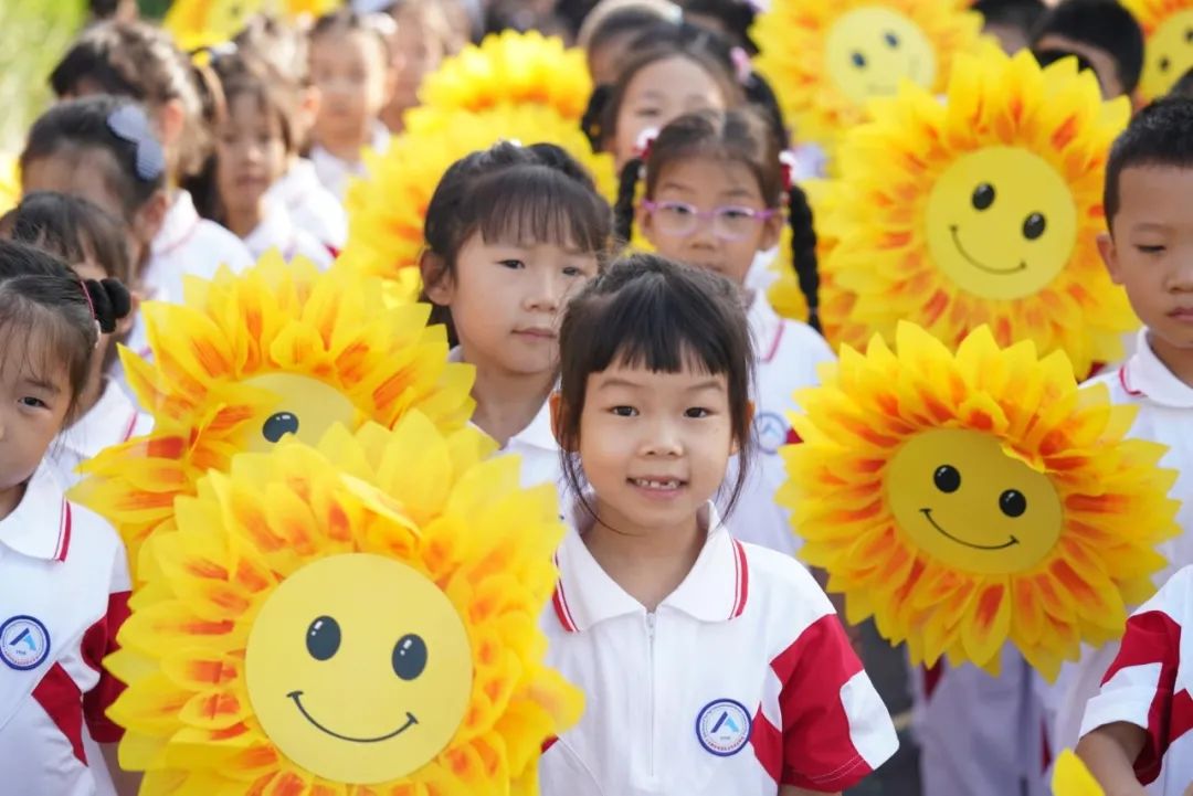在热情洋溢的歌舞《奋进新征程》中,开学典礼落下帷幕。