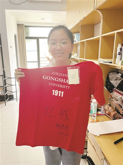 令明静非常激动的“成人礼”,正是浙商大党委书记、校长郁建兴亲笔写下“超越”二字的定制红T恤衫。“只有超越才有创新,只有超越才有建树。”郁建兴鼓舞每位“小寿星”,期待他们未来在浙商大的赛道上跑出好成绩。