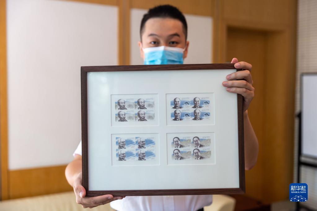 9月7日,工作人员在中国科学院上海分院展示《中国现代科学家(九)》纪念邮票。新华社记者 王翔 摄