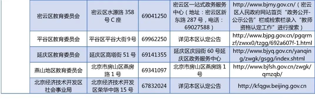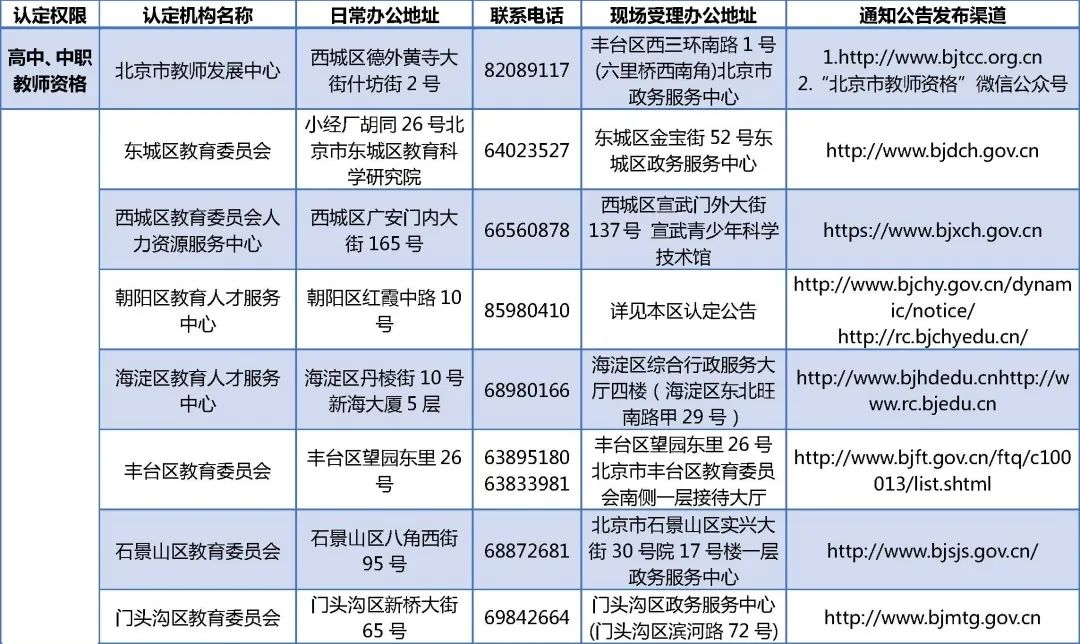 北京市教师资格认定机构地址及联系方式