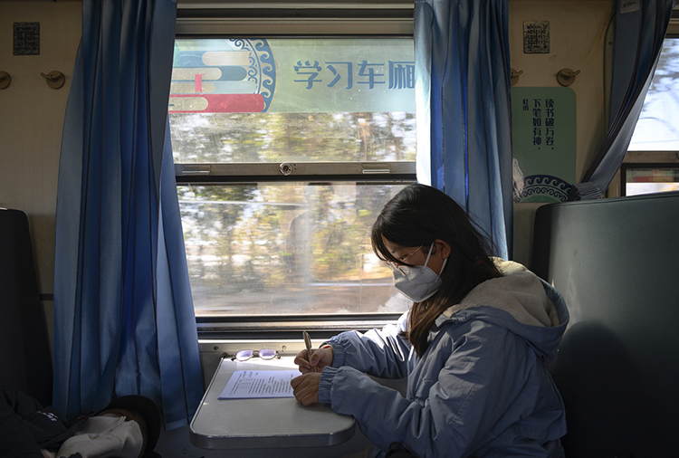 学生在“慢火车”上学习。中国铁路成都局集团公司供图
