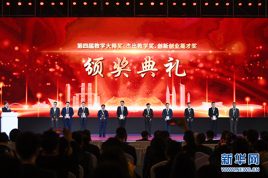 第四届教学大师奖、杰出教学奖和创新创业英才奖颁奖典礼现场。新华网 耿骏宇 摄