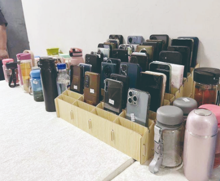 走进评卷场,评卷教师们全神贯注地盯着屏幕,专注评阅每一份试卷。室外长桌上,放着教师们的随身携带物品。所有评卷教师和工作人员,不准携带电脑、手机、相机和其他通讯工具进入评卷场所,手机、水杯等必需品要求放在规定地方,统一集中管理。