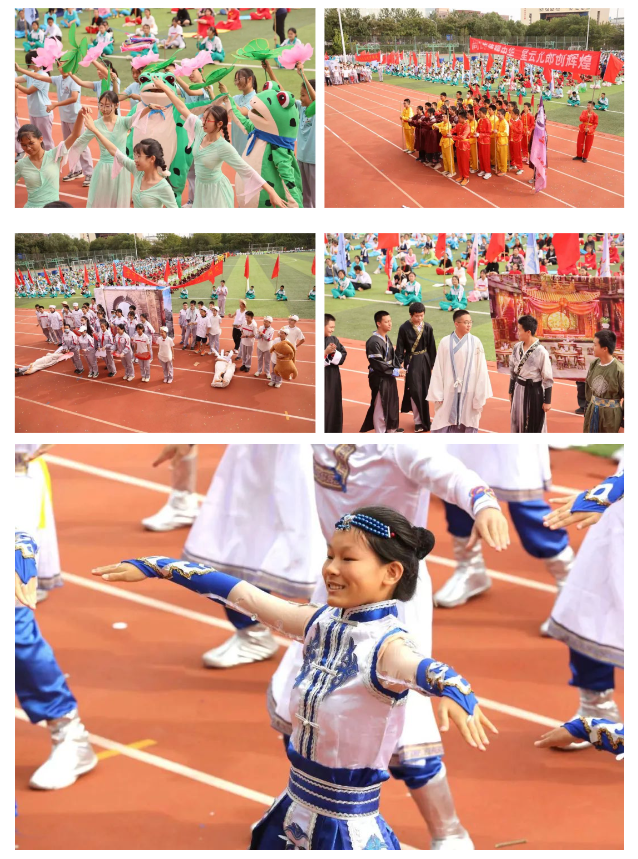 入场嘉年华展演活动中,小学一二年级用方阵献礼;三四年级以“少年向上·展上地风采”为主题,进行创意展示。中学初一年级以“展时代特色·科技范”为主题,进行创意展示,有趣活泼;初二年级以“秀中国风范·中国风”为主题,进行创意展示;初三年级以队列方阵的方式入场。