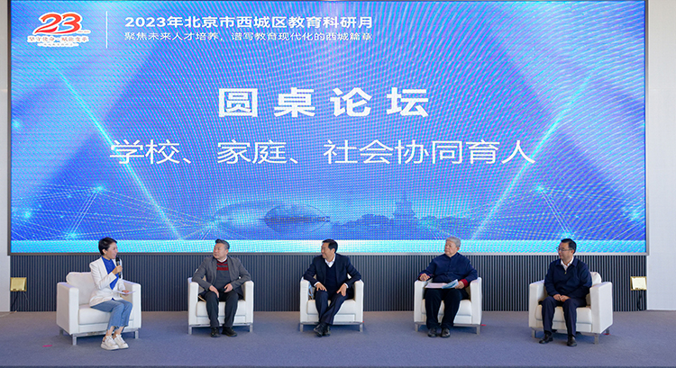 新华网北京11月21日电 近日,由北京市西城区教育委员会、西城区教育学会主办,西城区教育科学研究院承办的“2023年北京市西城区教育科研月”启动。在开幕式的圆桌论坛环节,北京市第八中学校长王俊成与多位嘉宾围绕“学校家庭社会协同育人”展开了讨论。