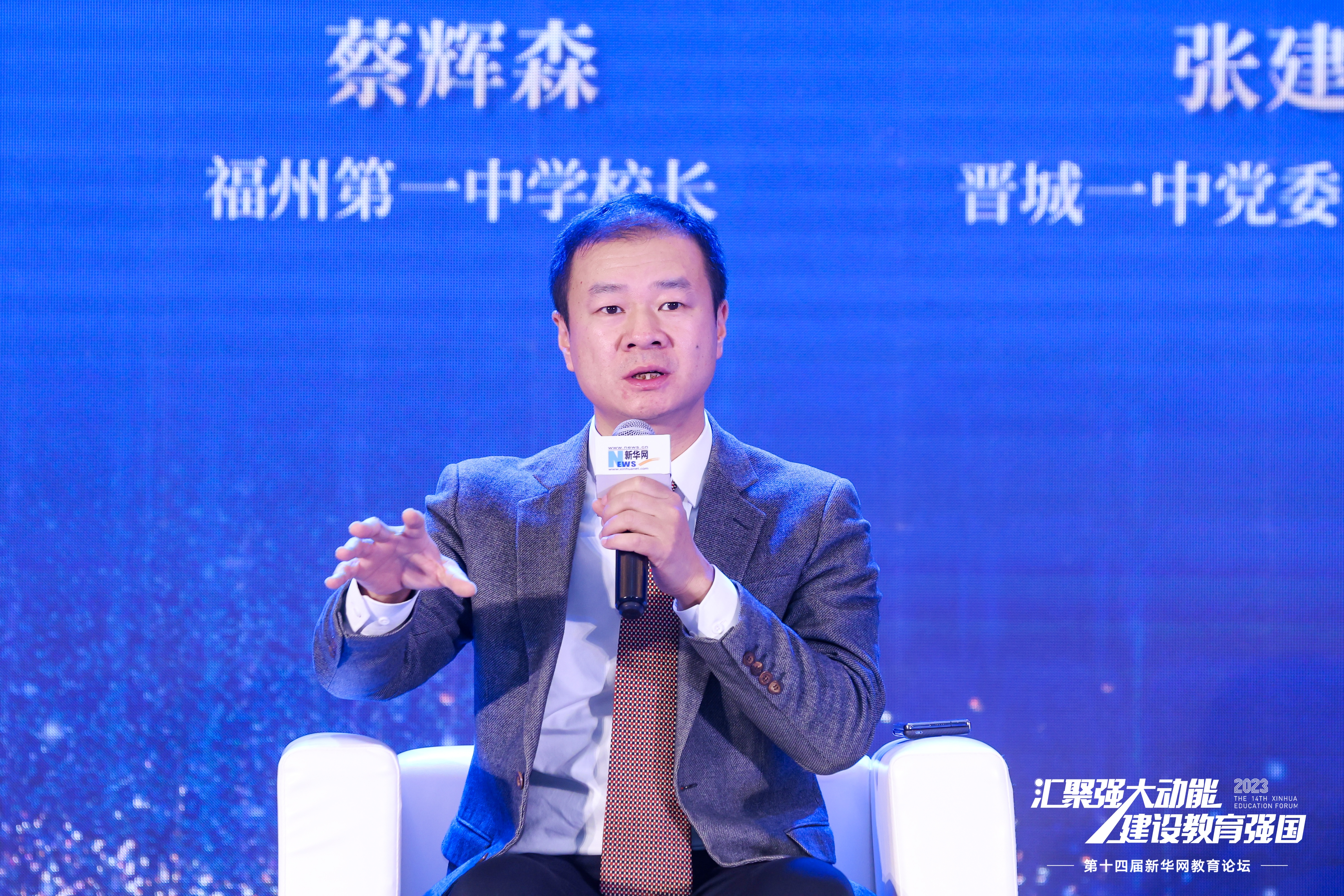 新华网北京12月25日电 近日,以“汇聚强大动能 建设教育强国”为主题的第十四届教育论坛在京举办。当日下午,在基础教育场次的圆桌对话环节,福州第一中学校长蔡辉森围绕“家校教育”“中学生思政教育”等话题分享了自己的观点。
