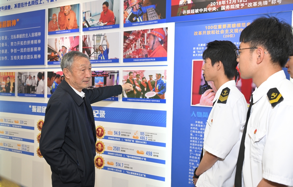 港湾学院客座教授许振超为学生讲“一钩准”绝活