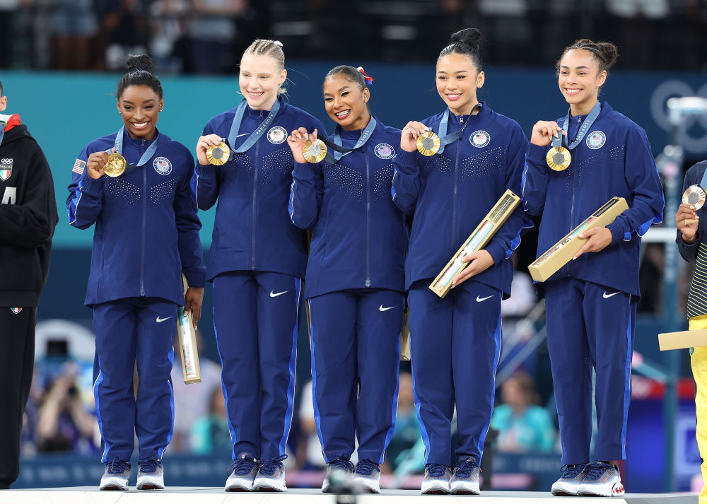 体操女子团体赛美国队夺冠。新华社记者 杨磊 摄