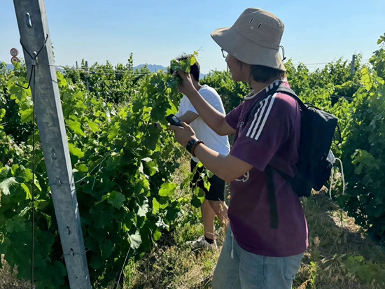 李子涵在葡萄田里调研学习。受访者供图