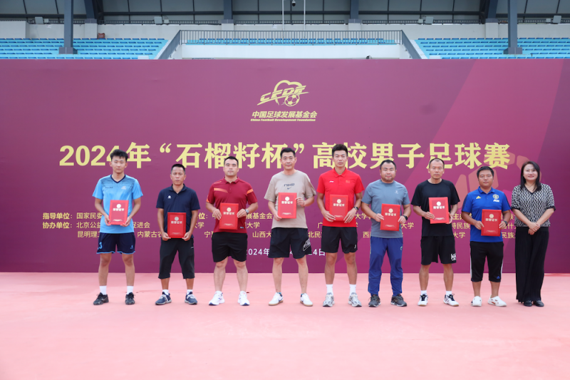 2024年“石榴籽杯”高校男子足球赛,由国家民委教育司指导,中国足球发展基金会资助,中央民族大学主办,于8月15日在中央民族大学丰台校区开幕,共有来自全国的16所高校、329名运动员和48名球队官员参加此次赛事。“石榴籽杯”高校男子足球赛,既是青年大学生展现青春活力的体育竞技盛会,更是培养爱国主义集体主义精神的生动实践课堂。