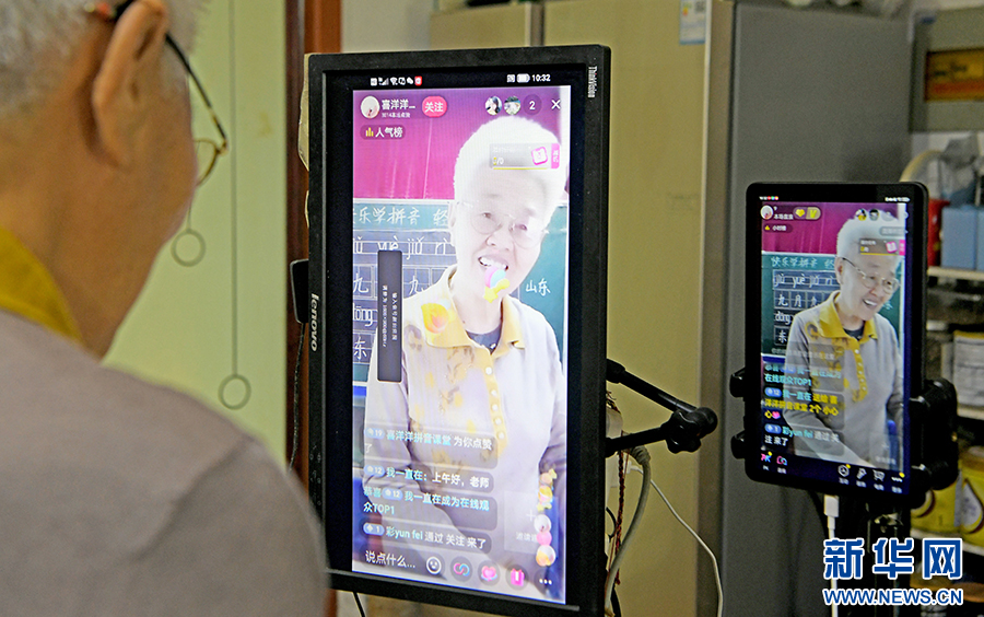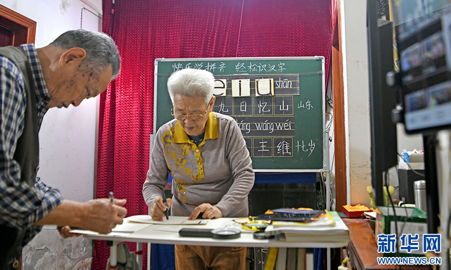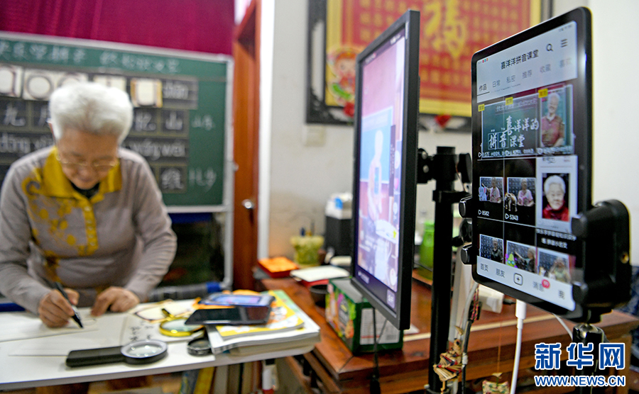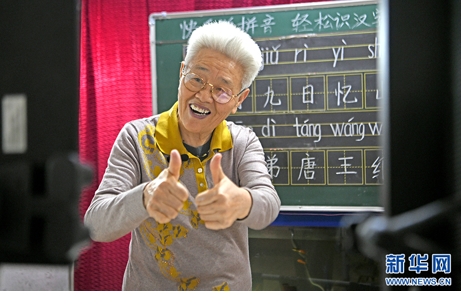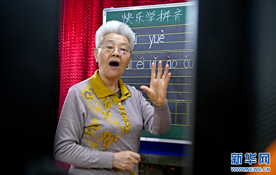 春蚕不老,夕阳正红。满头白发的杨维云从三尺讲台到互联网平台,从教孩童读音识字到吸引众多成人“铁粉”,始终不变的是对教育的热爱。新华网发(陈彬 摄)