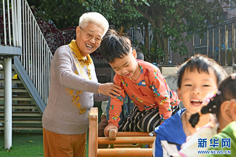 10月9日,杨维云回到以前工作过的锦程幼儿园,与小朋友一起玩乐。