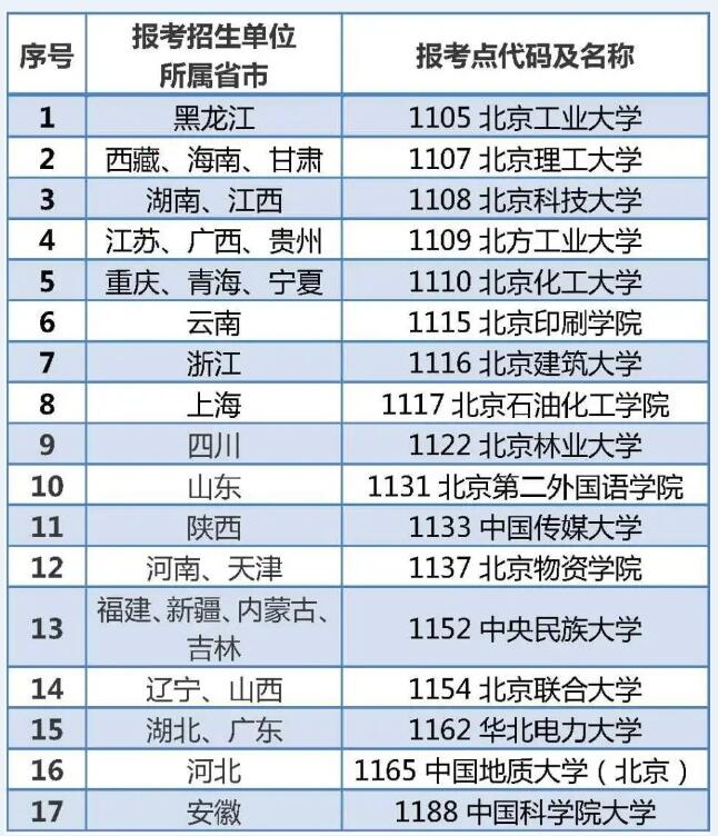 一、对于报考京内招生单位的考生,须按《报考单位—北京报考点一览表》选择报考点。