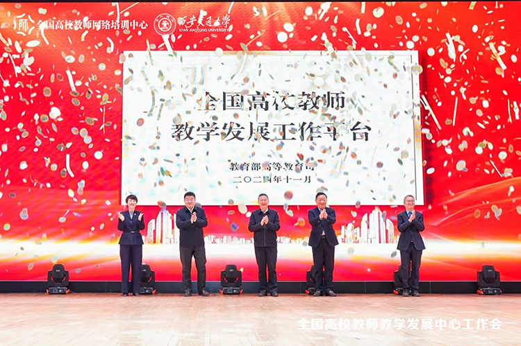 新华网北京12月2日电 为深入学习贯彻落实党的二十届三中全会精神和全国教育大会精神,加快推进人工智能赋能教师教学发展工作,提高人才自主培养质量,2024年11月28-30日,由教育部高等教育司指导、全国高校教师网络培训中心主办、西安交通大学承办的2024年全国高校教师教学发展中心工作会在西安举办。多地教育行政部门负责同志、西安交通大学党委副书记王欢等来自400余所高校的嘉宾、教师教学发展部门负责人和专家学者等800余人参会。教育部高等教育司副司长武世兴出席并作主旨报告,中国教育出版传媒集团党委副书记、总经理宋永刚,陕西省委教育工委委员、教育厅副厅长吴振磊,西安交通大学党委常委、副校长单智伟,西安交通大学党委副书记王欢等领导同志出席会议。高等教育出版社党委委员、副总编辑、全国高校教师网络培训中心主任张泽作工作报告。会议由全国高校教师网络培训中心常务副主任沈强主持。
