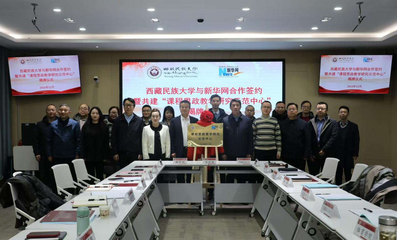 为深入贯彻落实党的二十届三中全会精神和全国教育大会精神,进一步落实习近平总书记致学校建校60周年贺信精神,强化课堂价值观引领,推动思政课程走深走细,持续提升教师育人能力和水平。12月31日,新华网与西藏民族大学合作签约暨合作共建课程思政教学研究示范中心揭牌仪式在学校渭城校区举办。新华网党委委员、首席信息官姚予疆、教育事业中心运营总监徐晶及新华思政相关同志,校党委常委、副校长王浩出席签约仪式。各学院教学院长、教务处全体人员参加仪式。