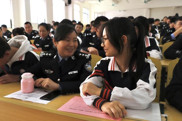 在预防青少年违法犯罪方面,“警服蓝”有着显著优势。课堂上,身着制服的警察运用真实鲜活的案例,用以案说法的形式讲述违法犯罪要面对的法律后果,同时对如何甄别和防范违法犯罪行为进行普法,往往能取得事半功倍的效果。为巩固普法成效,广西监狱管理局和结对帮扶学校建立法治教育长效机制,担任学校法治副校长、辅导员的监狱警察每学年到联系学校开展一次法治宣传教育、一次心理健康测试活动。对于有潜在心理问题的学生,或者在日常教学过程中发现有严重不良行为的学生,及时进行一对一辅导,将问题消灭在萌芽状态。