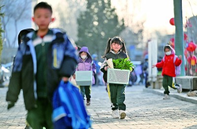 2月16日,宁夏银川市兴庆区实验二小学生走进校园。新华社记者 王鹏摄