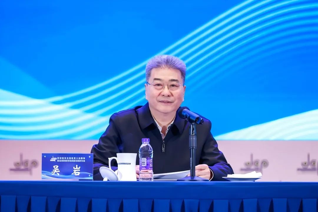 吴岩系统盘点了2024年职业教育工作,分析了当前职业教育面临的形势,并对2025年职业教育工作进行了部署。吴岩强调,当前国家战略需求、科技革命、产业变革、国际形势、人口变化等新形势,倒逼职业教育要进一步深化改革。2025年,职业教育战线要以“落实”为主题,深入学习贯彻全国教育大会精神,将战略目标转化为战略任务,转化为具体举措。一是要“立框架”,系统推进职业教育体系建设改革,特别是要从学校层面推进“一体两翼”建设。二是要“练内功”,围绕职业教育“101计划”,各学校要做好职业教育“新基建”,打造一流的专业、课程、师资、教材、实习实训基地。三是要“树标杆”,做好新一轮“双高计划”建设,实现从原来的“基础好、条件好”,转向“服务好、支撑好”。四是要“扩影响”,研制标准,有序地推进“职教出海”,持续扩大职业教育国际影响力。五是要“保安全”,要切实做好职业院校安全稳定工作,确保“万无一失”。