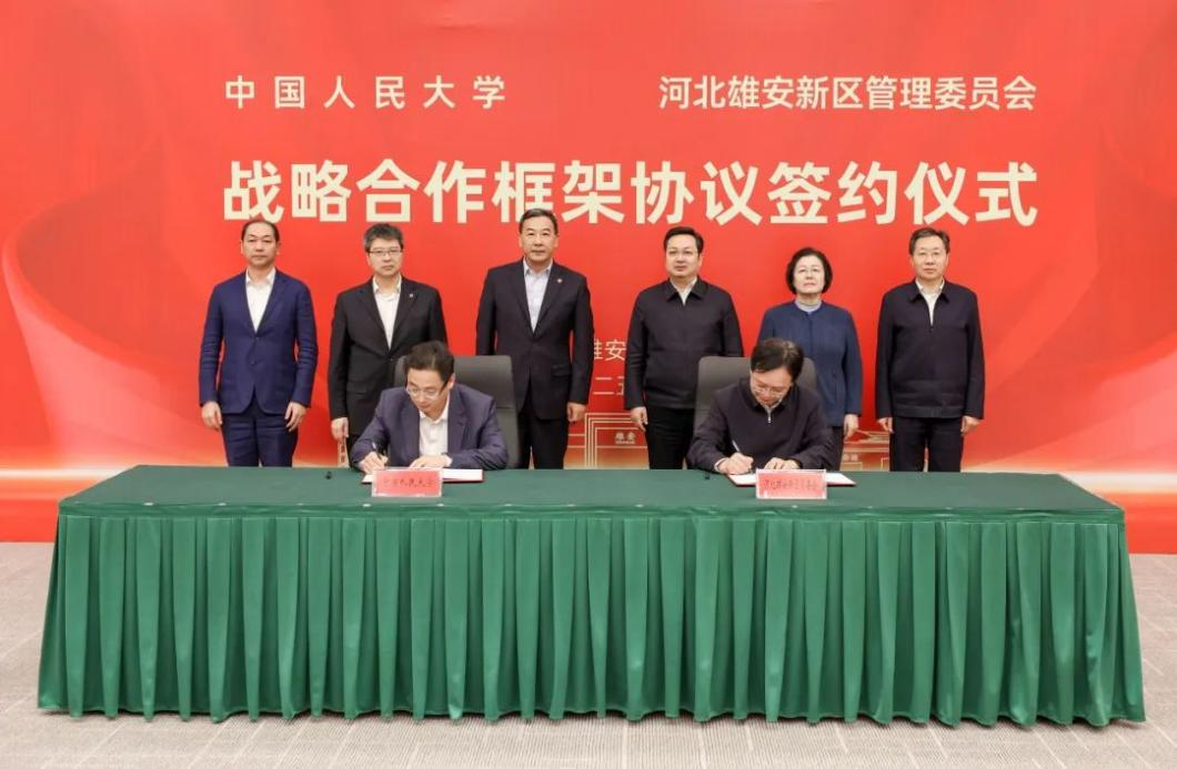 3月18日,中国人民大学与河北雄安新区管理委员会签署《中国人民大学 河北省雄安新区战略合作框架协议》。